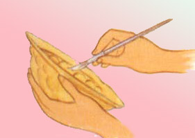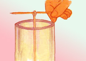 Hanging the wick vertically using a tooth pick or cane