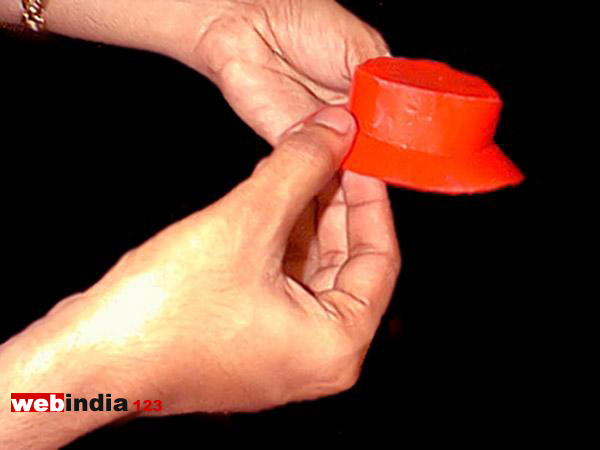 take a piece of red varnish paper and make a small cone out of it, and stick it